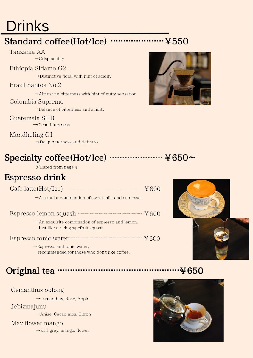 Tomarigi coffee Menu